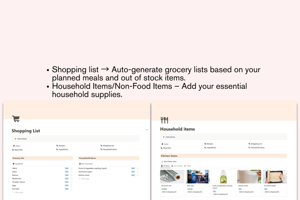 Household Items/Non-Food Items: Keep track of essential household supplies and non-food items alongside your grocery list.