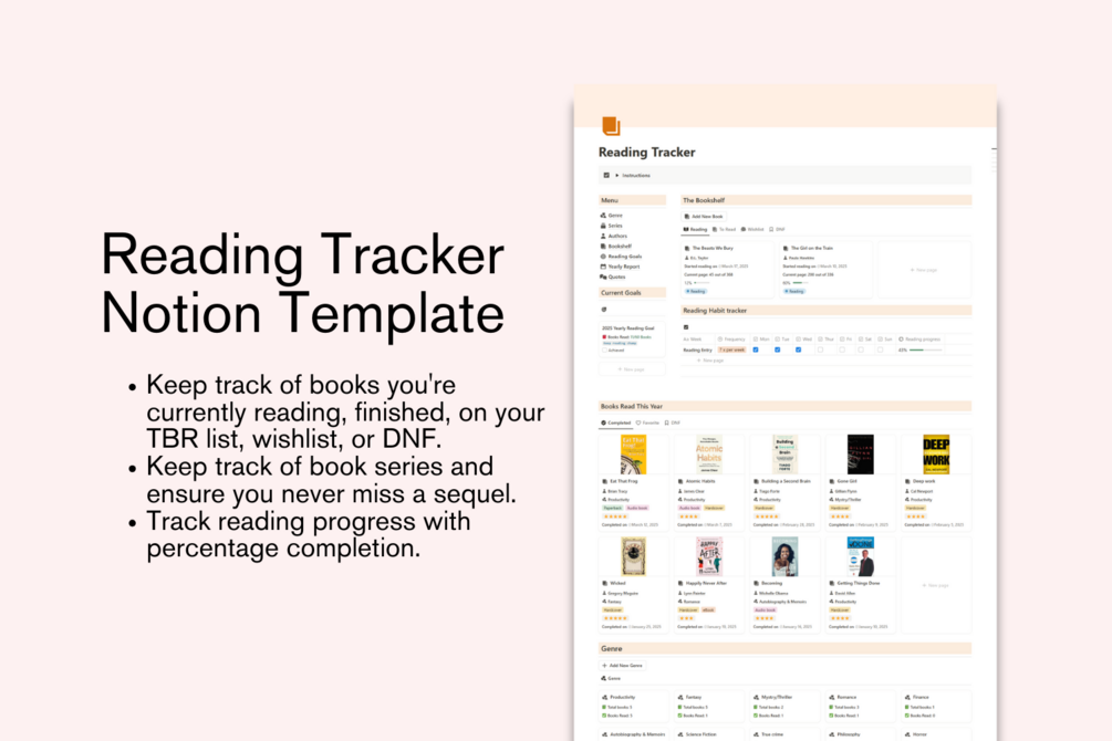 Stay organized and level up your reading experience with the Reading Tracker Notion Template!