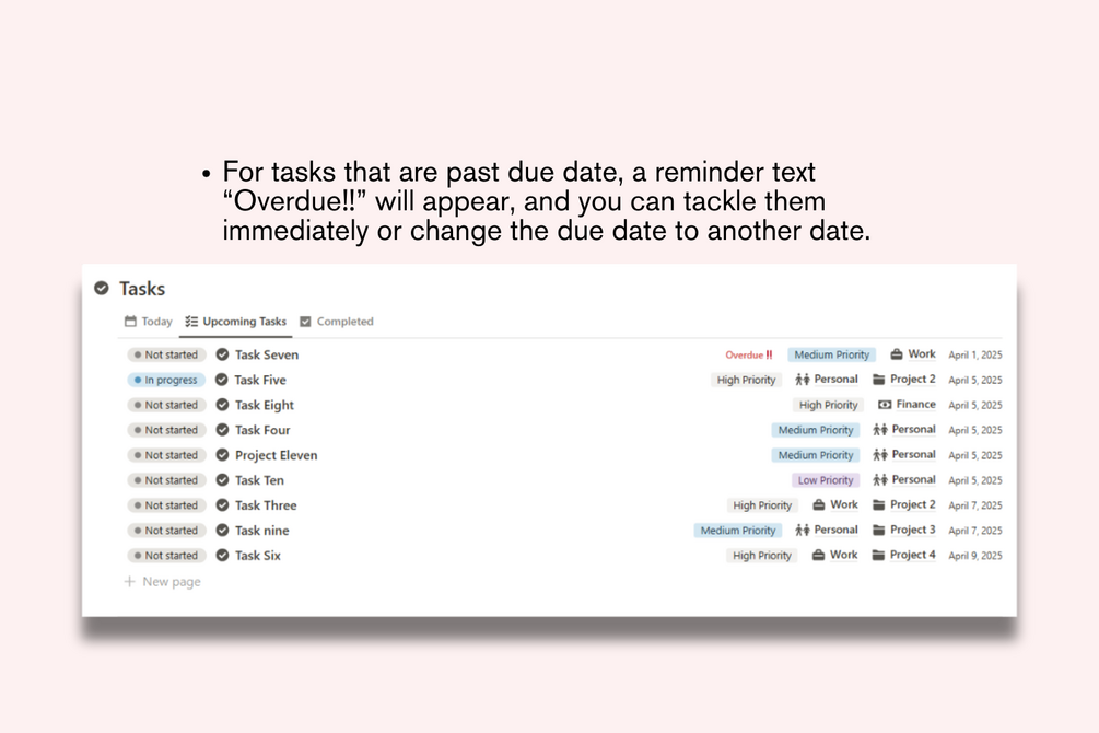 - Get reminded of overdue tasks so nothing slips through the cracks