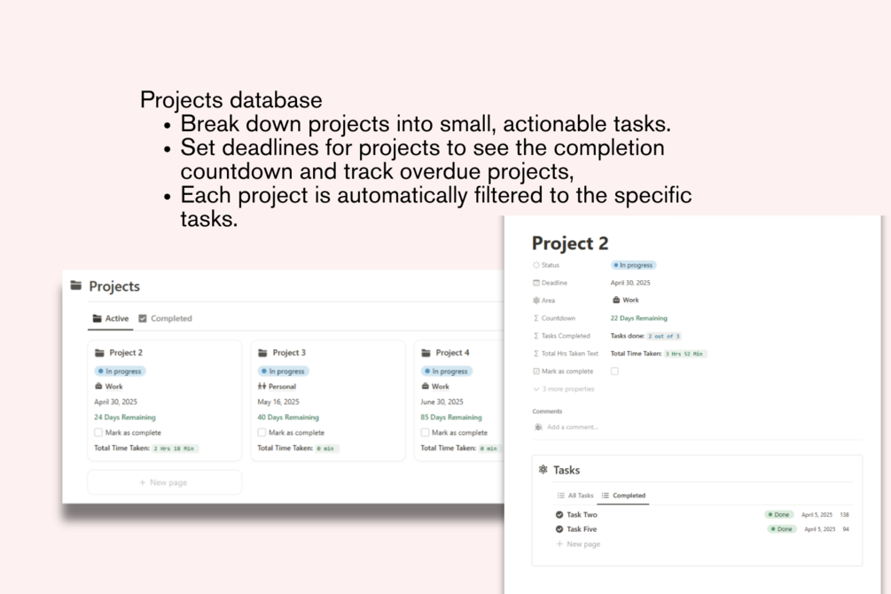 - Track tasks completed for each project.