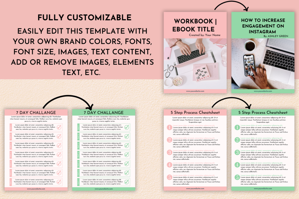 Easy to edit ebook-workbook templates using the free Canva tool.
