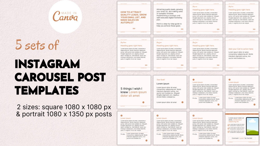5 sets of Instagram Carousel post Canva templates.