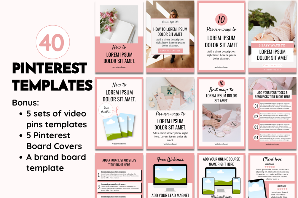 • All the design work has been done for you, so you can get your content onto Pinterest ASAP.